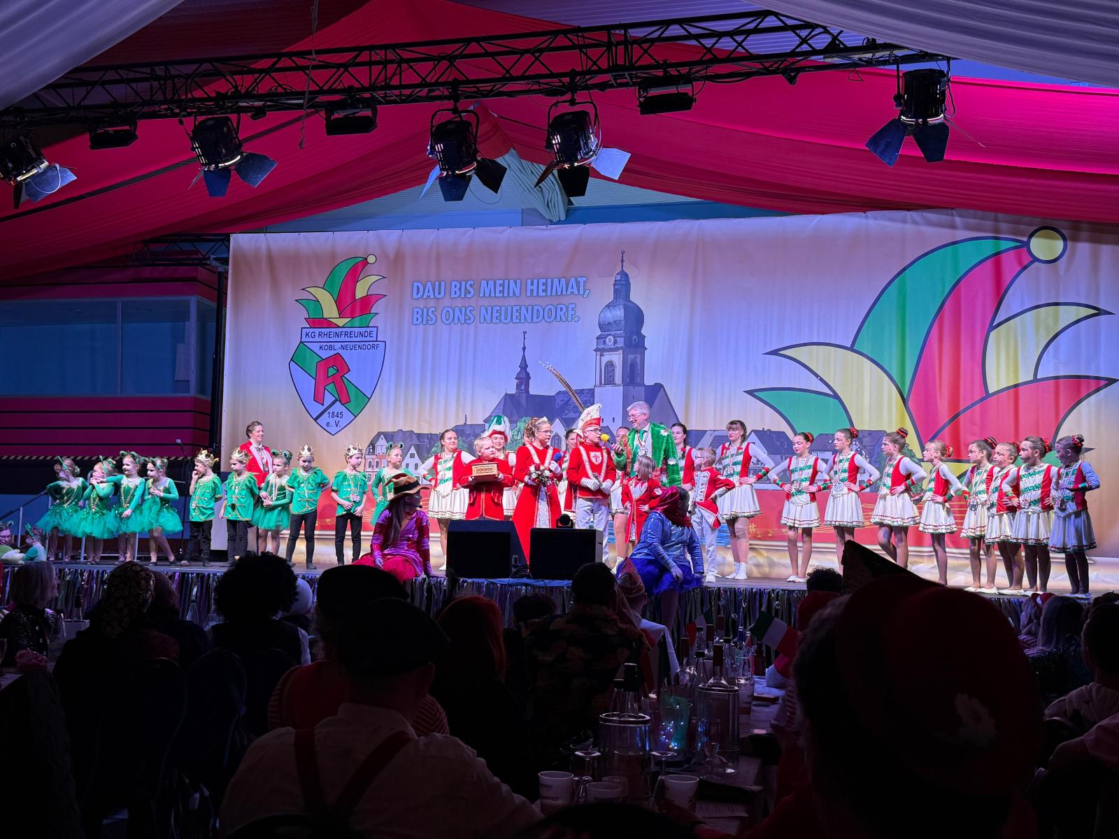 Am 30. Januar 2026 luden die KG Rheinfreunde 1845 e.V. zur traditionellen Kostümsitzung und die närrische Atmosphäre ließ nicht lange auf sich warten. In einer mit über 430 Gästen, bis auf den letzten Platz ausverkauften Halle und einer bunten Mischung aus Tanz, Humor und Musik wurde ein abwechslungsreiches Karnevalsprogramm geboten. Dank der engen Zusammenarbeit mit den Funken Rot-Weiß-Gold aus Metternich leuchtete die Halle in den festlichen Farben Rot, Weiß, Gold und Grün und unterstrich so die starke Verbindung zwischen den beiden Vereinen.