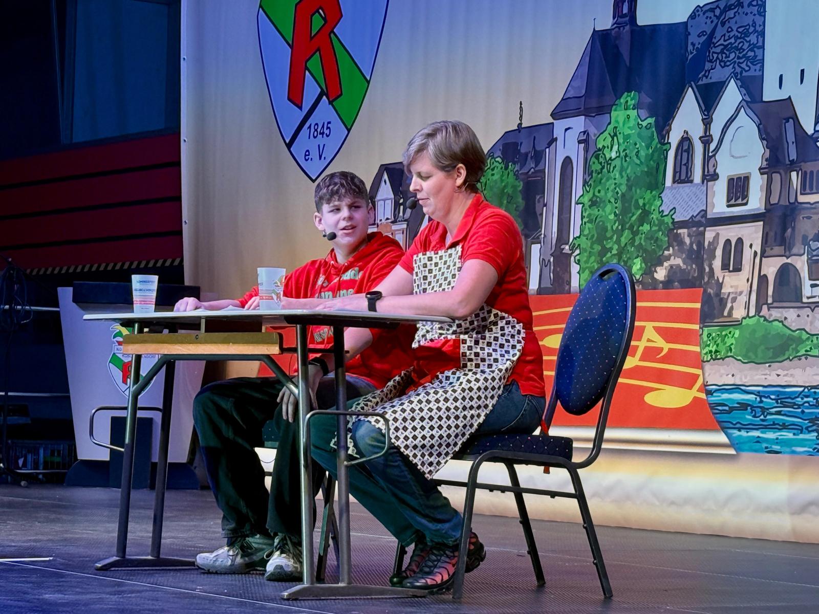 Neben den tänzerischen Highlights rundeten humorvolle Redebeiträge das Programm ab. Sascha und Sabine Anders sorgten mit ihrem Mutter-Sohn-Zwiegespräch über die „Last“, Oma zu werden, für viele Lacher. Petra Gerharz unterhielt das Publikum mit humorvollen Einblicken in das Berufsbild des Lehrers im Wandel der Zeit. Auch Christoph Schnaß sprach über das alltägliche Familienleben, Astrid Feith präsentierte Geschichten rund um Max und Moritz, und Carolin Kiefer begeisterte als „Seele des Hüttchensbaums“. Stefan Strunk ließ das Publikum zudem auf charmante Weise an den behördlichen Hürden der Straßenreinigung in den Neuendorfer Straßen teilhaben. Im Rahmen des kurzweiligen Programms wurden Daria Mahlich und Sascha Anders mit dem Eigengewächsorden der AKK ausgezeichnet.